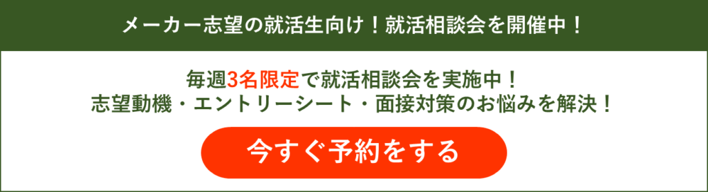 メーカー志望の就活生の方にご好評をいただいている就活生相談会を毎週実施しておりますので、是非ご連絡ください!