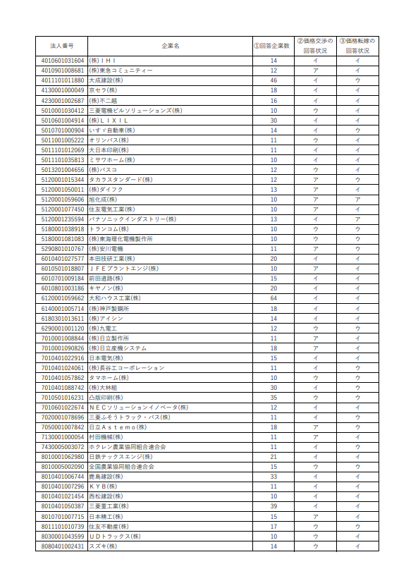 実際に、コロナ禍の値上げを認めなかった企業は企業名が開示され、中小企業庁からの警告がありました。