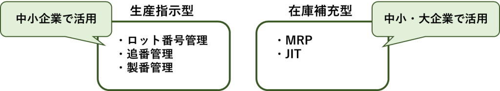 今回ご紹介する5つの生産管理手法は大きく2つのグループに大別されます。