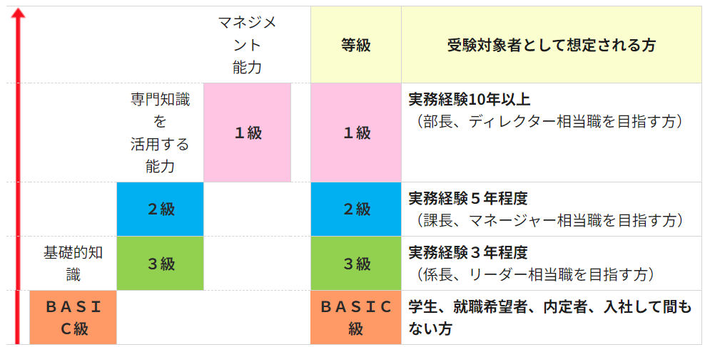 下記は試験運営元の中央職業能力開発協会が示しているビジネス・キャリア検定の等級イメージになります。