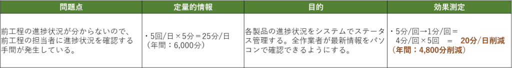 例えば、『工程の進捗を見える化したい』という目的を設定したとします。