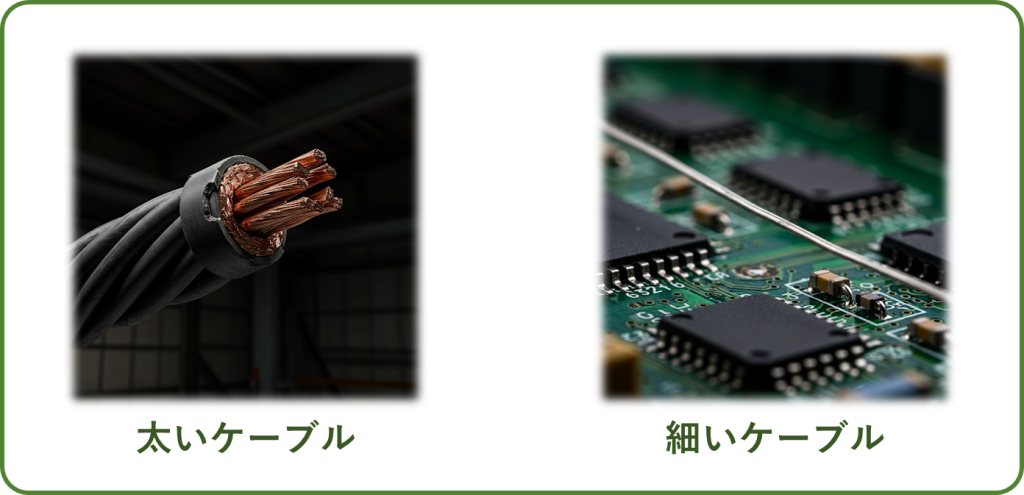 例えば、ケーブル加工系のメーカーの場合、重電系の太いケーブル基板などに用いられる細線同軸などの非常に細いケーブルなど多種多様なケーブルが存在します。