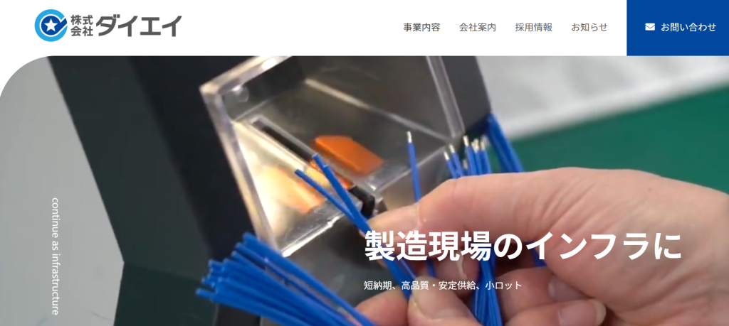 3社目は小ロット・多品種・短納期に対応できる体制が強みの株式会社ダイエイです。