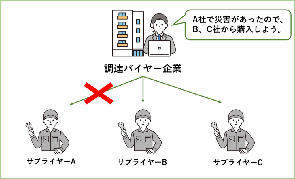 サプライヤーのマルチ化とは、複数のサプライヤーから同じ部品を購入できるパイプを作っておくことで、ある1社が有事の際に別のサプライヤーから購入できるようにすることです。