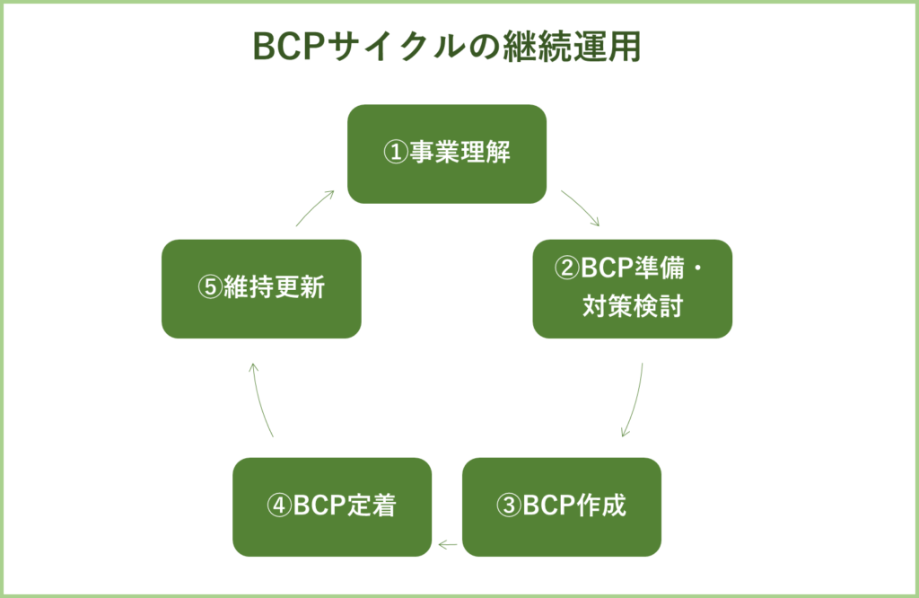 BCPサイクルとしては、下記の5ステップを踏みます。