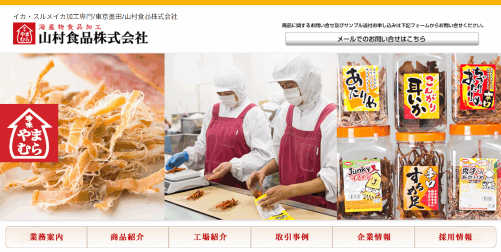 3社目はあたりめ・さきいか・酢イカ・松前漬などの多彩な加工品の製造が強み山村食品株式会社です。