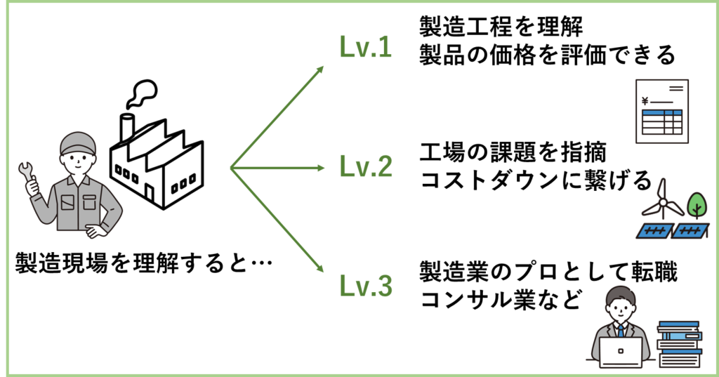 製造現場を知る事のメリットは下記です。
