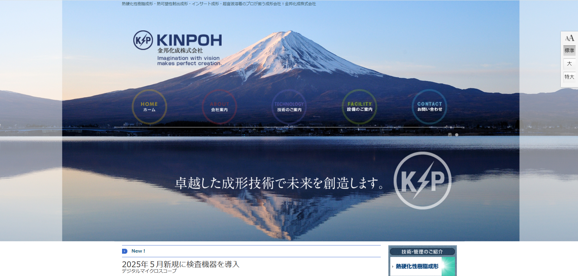 近年はKEYENCEマイクロスコープ導入や成形機更新など、品質保証と設備更新にも積極的に取り組んでいます。