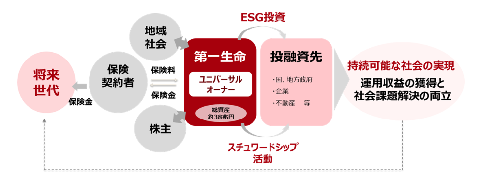 最近では、第一生命保険株式会社などの機関投資家は各社声明を発表しており、多様なステークホルダーを意識した『責任ある資産運用』を宣言しております。