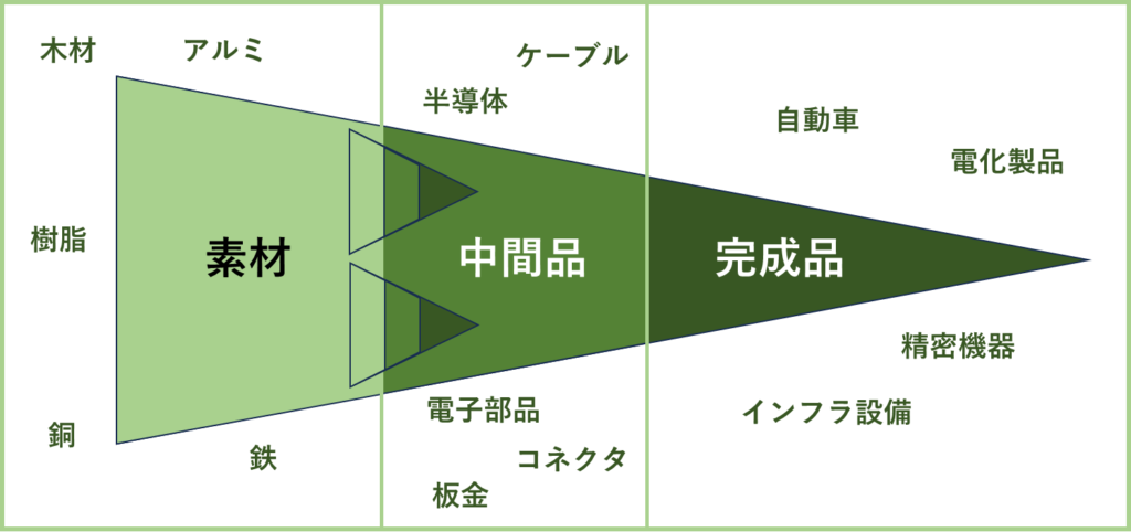 中間品・素材に近づくほど様々な企業で利用される為、非常に労働市場で評価される人材になります。