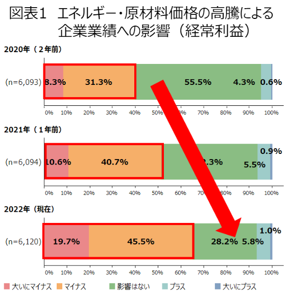徐々に経営を圧迫するほどの影響になりながらも、価格上昇分の50%も価格転嫁できていない状況です。