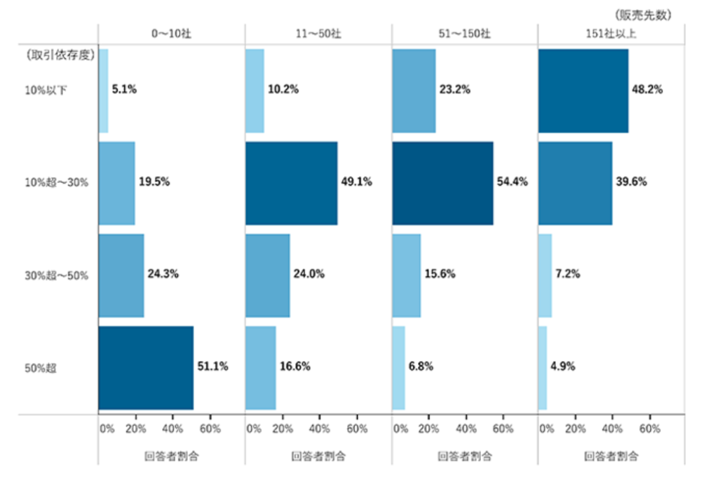 この資料を見て分かるように、販売先数を増やすことが依存度を下げるためには必須です。