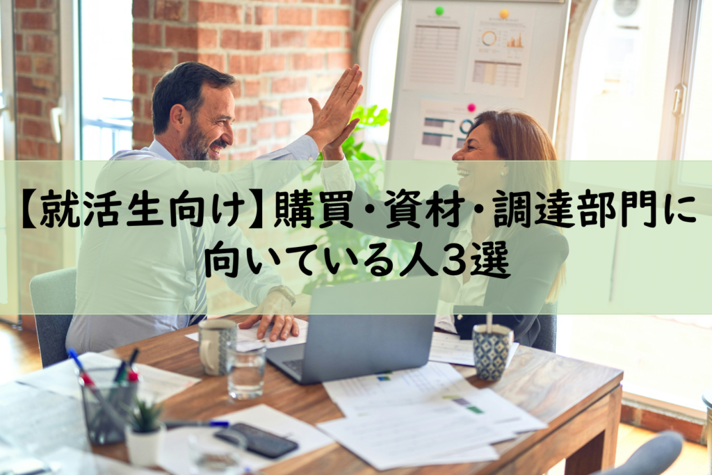 今回は購買・資材・調達部門に向いている人3選を紹介します。 こちらの記事ではこんな方にオススメです! ・メーカー志望の文系就活生の方・メーカーへ転職を考えている方 メーカー志望の方で具体的なキャリアの考え方に悩んでいる方も多いと思います。今...